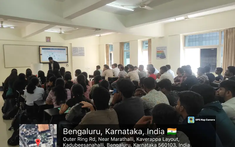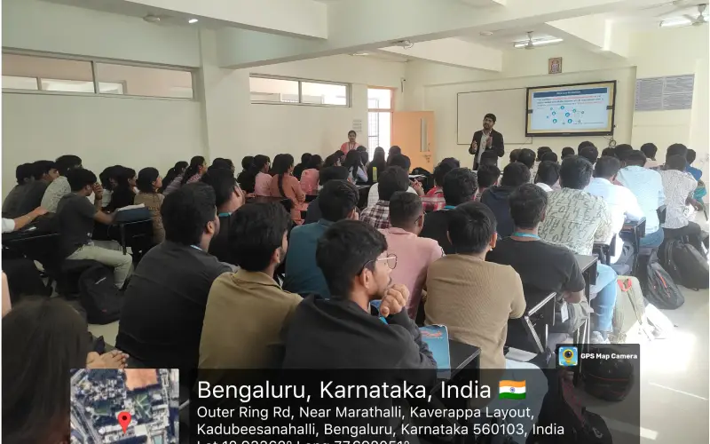 On 06th November 2025, the Department of Information Science and Engineering hosted an expert talk on “Mobile Applications in the Era of Blockchain and Digital Currencies.” The session was delivered by Dr. Shashidhara R, Principal Researcher at Samsung Research Bangalore. The aim was to provide insights into how blockchain and digital currencies were transforming mobile application development and security. Participants gained an understanding of real-world use cases, opportunities, and future trends in this emerging field.